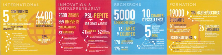 Université PSL (Paris Sciences & Lettres) : Chimie ParisTech, École nationale des chartes, École normale supérieure, École Pratique des Hautes Études, ESPCI Paris, Institut Curie, MINES ParisTech, Observatoire de Paris, Université Paris-Dauphine.